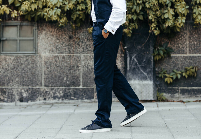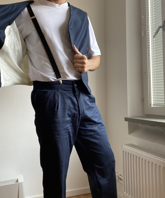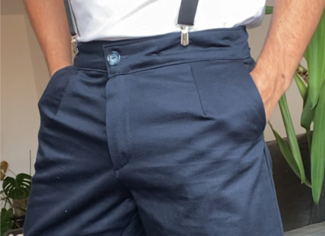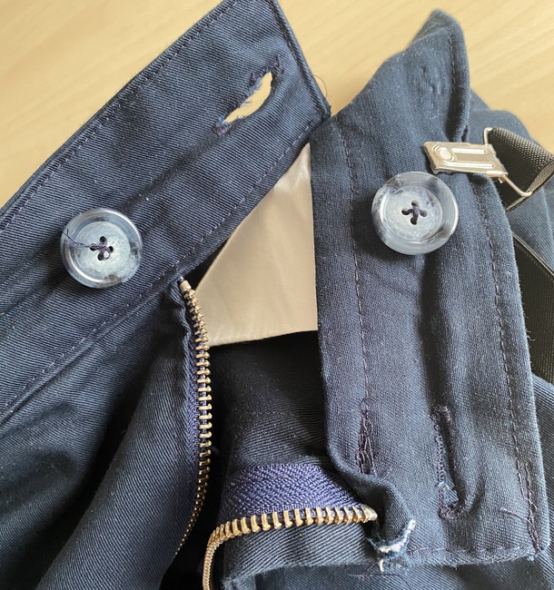De här chinos är inte riktigt som vanliga chinos. Mallen jag har utgick efter att jag tog mått på ett par frackbyxor. De var det närmsta till chinos jag hittade hemma. Skillnaden med frackbyxor är att de är till för att bäras med hängslen, därmed är lite högre vid midjan. Den här guiden är övergripande om stegen, men måtten får du ta själv genom att mäta ett par byxor som passar dig.