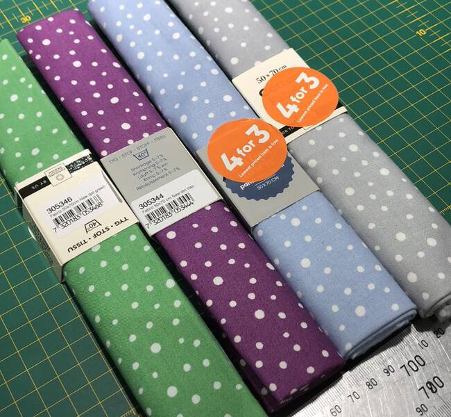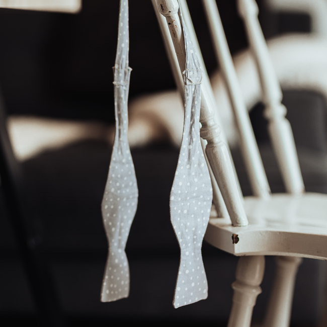 Vi köpte tyget från panduro på och lyckades hitta ett “4 för 3”-rabatt. Utöver dessa tygbitar köpte vi mellanlägg för att stryka på och göra flugorna styvare. En 50x70cm tygbit räckte till 2 flugor. Totalt landade vi på 180kr vilket per person blev 45kr, och då hade vi tyg över för fler flugor. Men räkna med ca 40kr per fluga. Beroende på material- och butikval såklart.